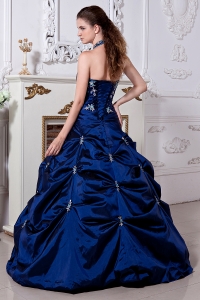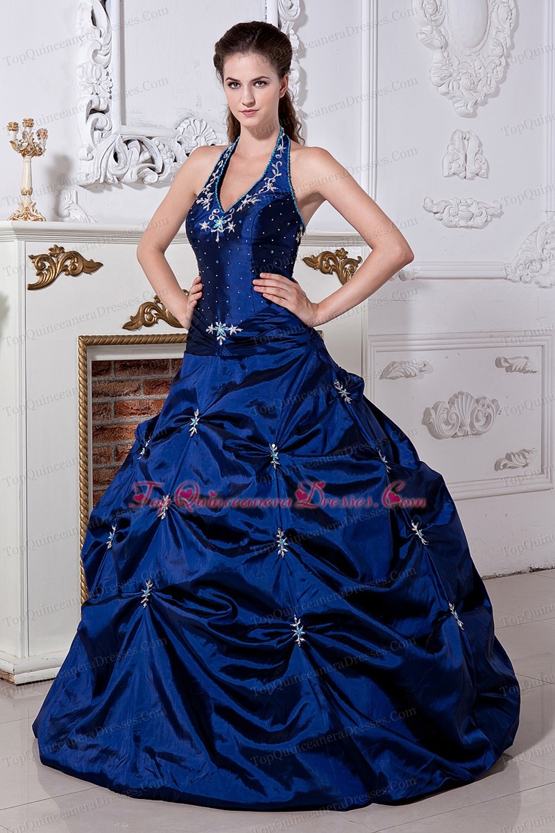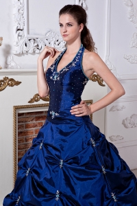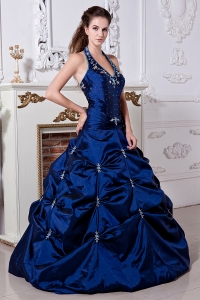 Halter Royal Blue Sweet 16 Dresses Embriodery for Quinceanera