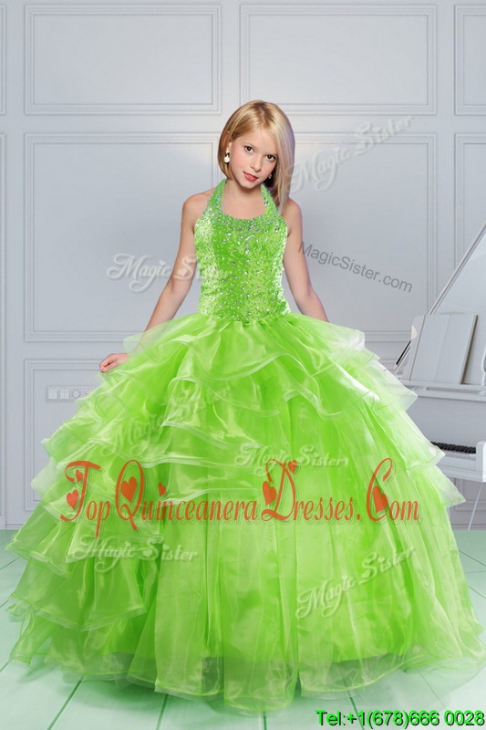 Halter Top Organza Sleeveless Floor Length Pageant Dress for Teens and Beading and Ruching