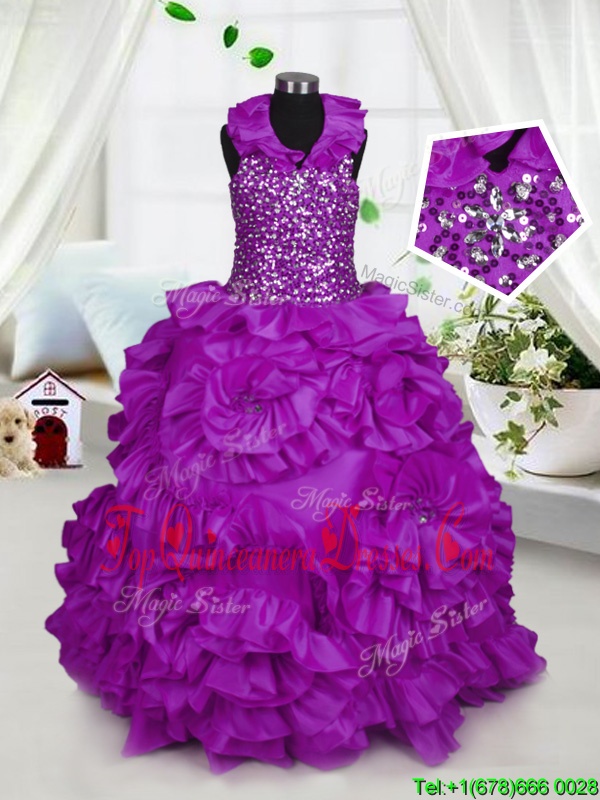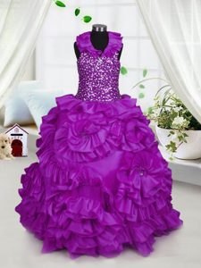 Halter Top Purple Sleeveless Beading Floor Length High School Pageant Dress