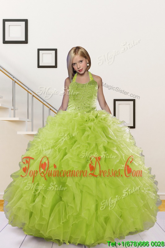 Halter Top Sleeveless Beading and Ruffles Lace Up Custom Made Pageant Dress