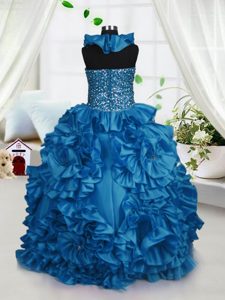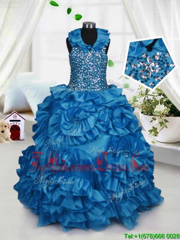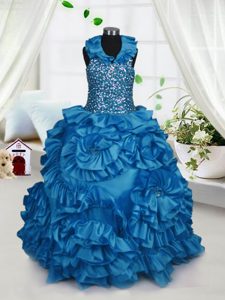 Halter Top Sleeveless Beading and Ruffles Zipper Little Girls Pageant Gowns