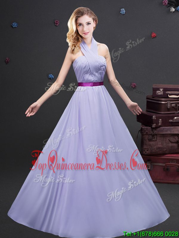 Halter Top Sleeveless Belt Zipper Quinceanera Dama Dress