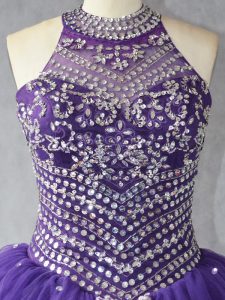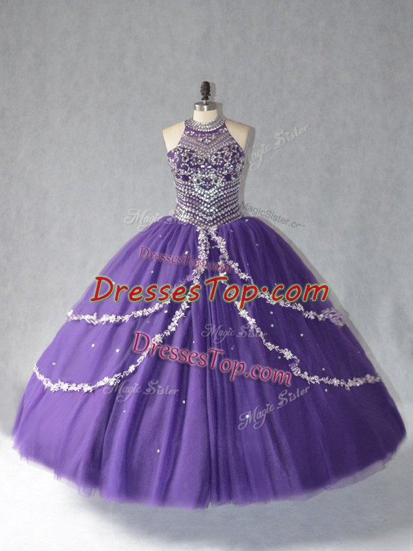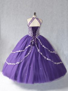 Halter Top Sleeveless Lace Up Sweet 16 Quinceanera Dress Purple Tulle