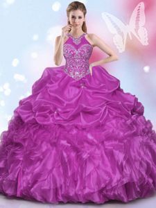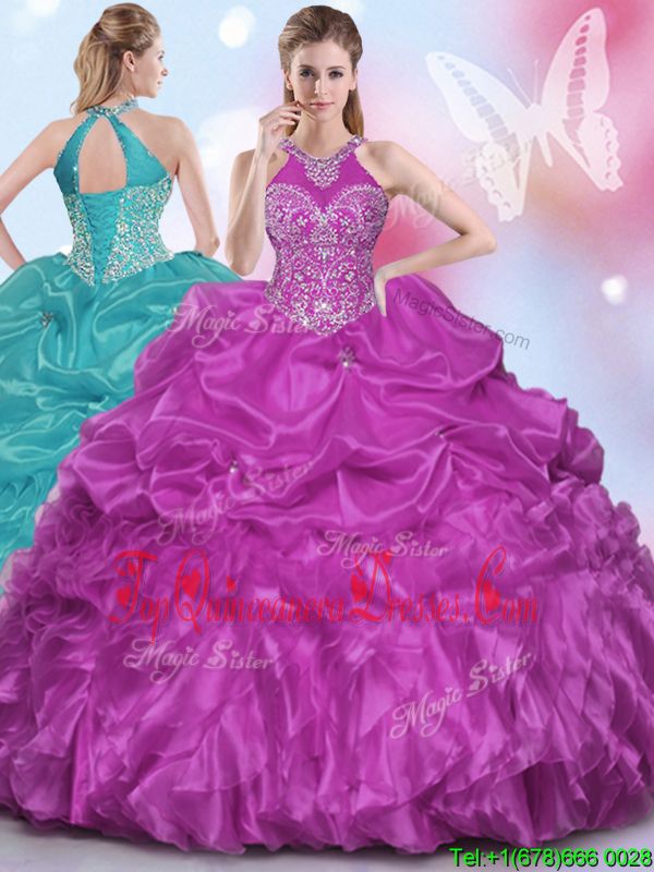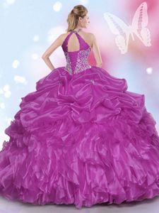 Halter Top Sleeveless Organza Damas Dress Appliques and Pick Ups Lace Up