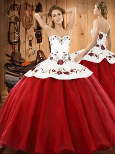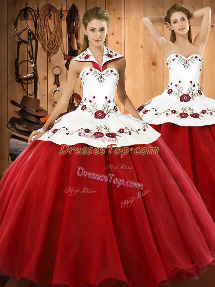 Halter Top Sleeveless Satin and Tulle Vestidos de Quinceanera Embroidery Lace Up