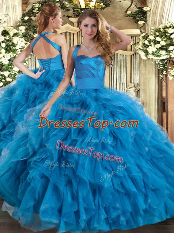 Halter Top Sleeveless Tulle Sweet 16 Dresses Ruffles Lace Up