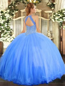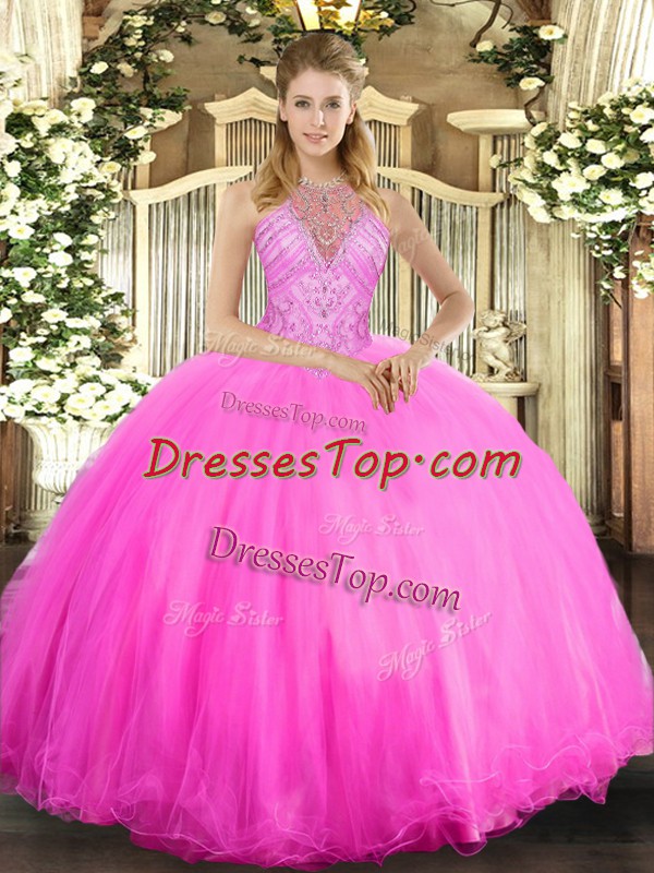 Halter Top Sleeveless Tulle Vestidos de Quinceanera Beading Lace Up