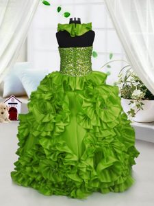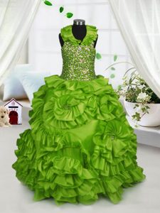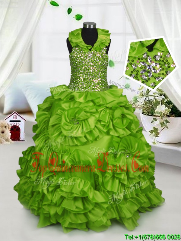 Halter Top Sleeveless Zipper Little Girl Pageant Gowns Olive Green Taffeta