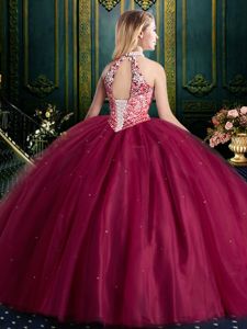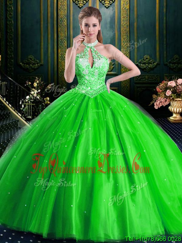 Halter Top Tulle Lace Up Sweet 16 Dresses Sleeveless Floor Length Beading