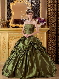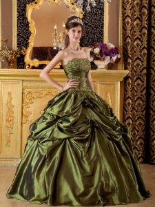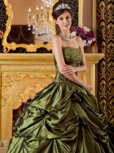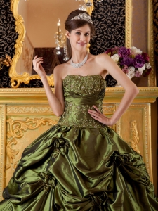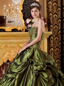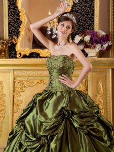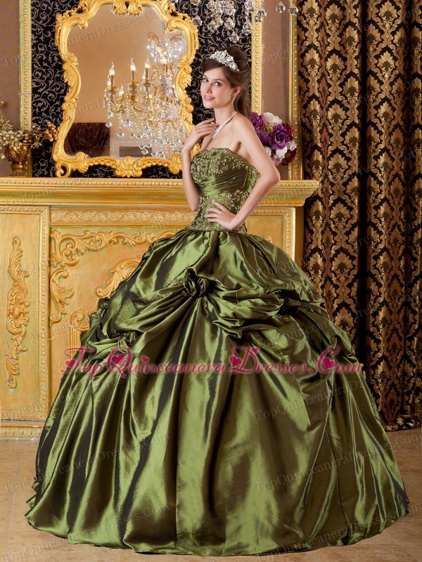 Hand Flowers Olive Green Quinceanera Dresses Appliques