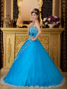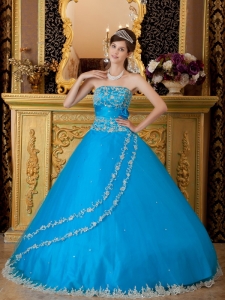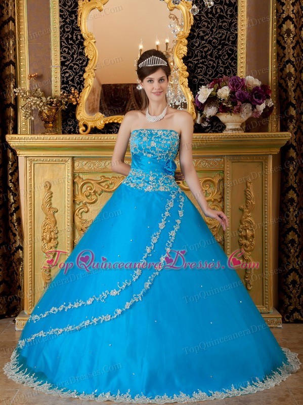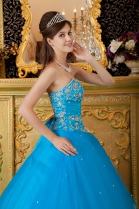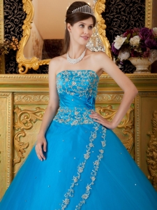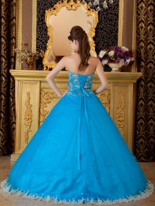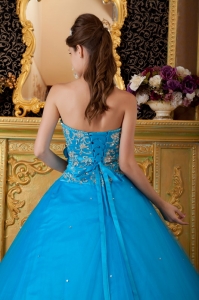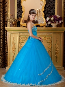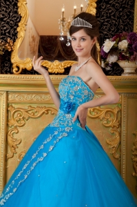 Hand Made Flower Appliques Teal Quinceanera Dress Gowns