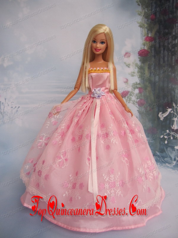 Hand Made Flower Lace Pink Ball Gown Barbie Doll Dress