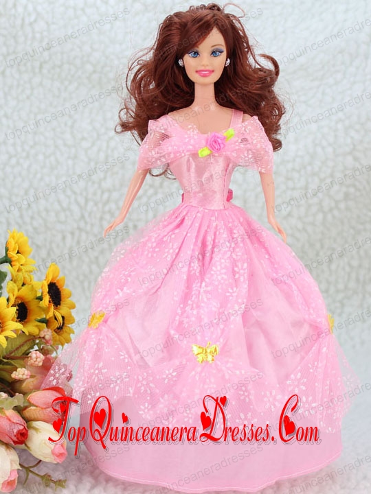 Hand Made Flower Pink Ball Gown Party Clothes Barbie Doll Dress