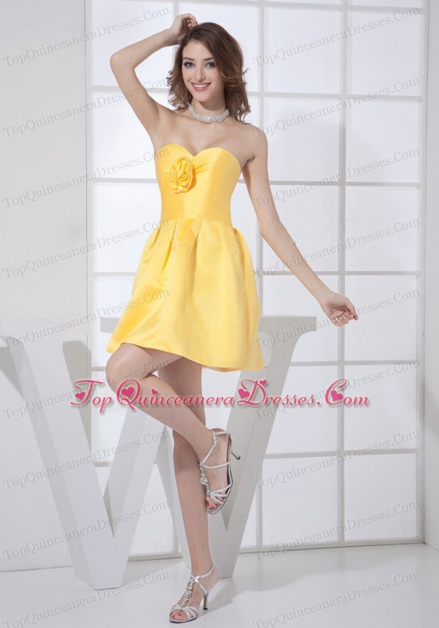 Hand Made Flower Sweetheart Yellow Dama Dresses Mini-length
