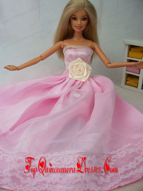 Hand Made Flower Tulle and Taffeta Party Dress Pink Barbie Doll Dress