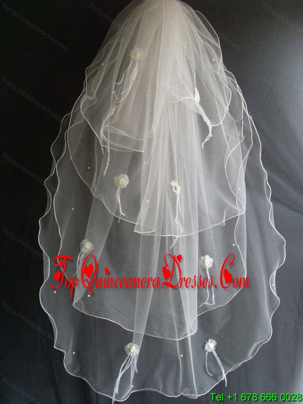 Hand Made Flowers And Beading Decorate Tulle Wedding Veil