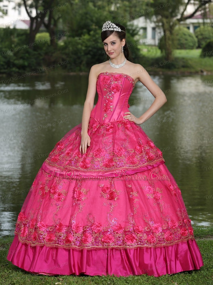 Hand Made Flowers Beading Sweet Sixteen Quinceanera Dress