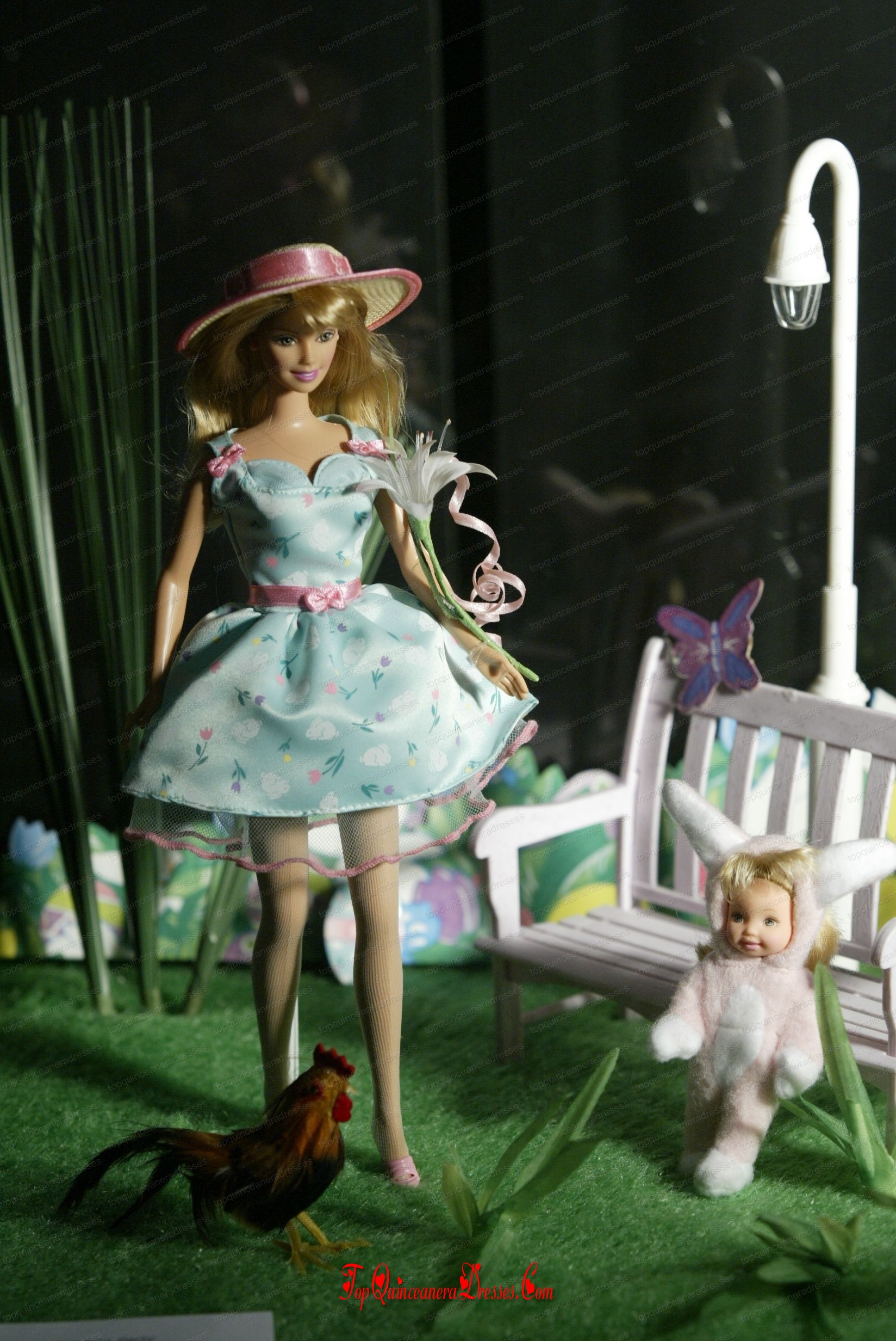 Hand Made Flowers Decorate Princess Party Clothes Gown For Barbie Doll