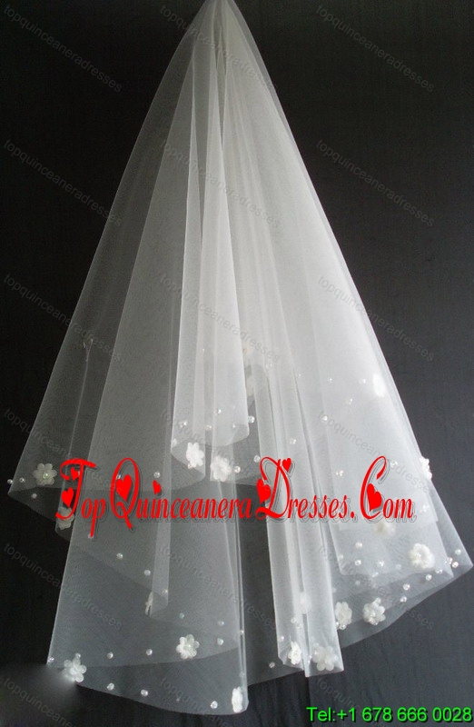 Hand Made Flowers Decorate Tulle Beautiful Wedding Veil