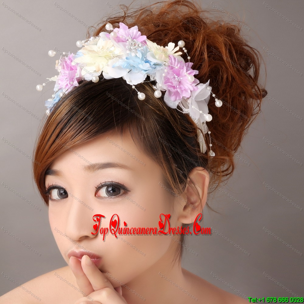 Hand Made Flowers For Muti-color Headpiece With Pearl
