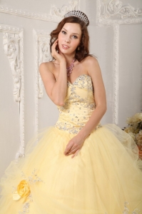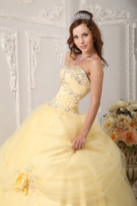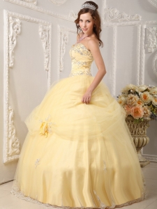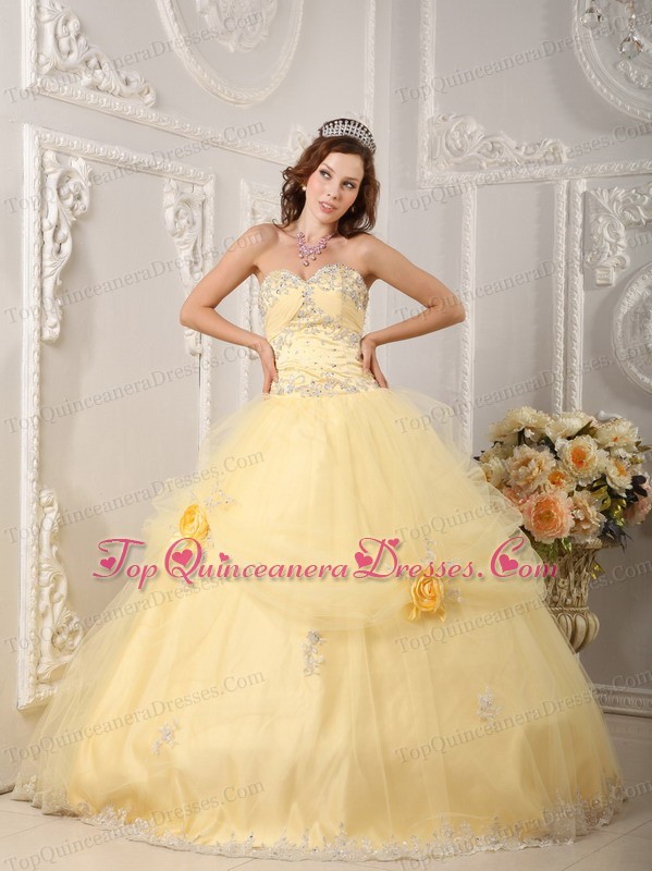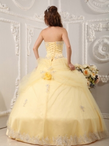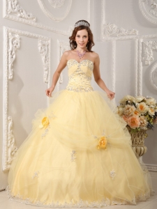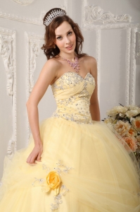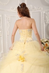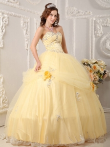 Hand Made Flowers Quinceanera Dress Appliques Light Yellow