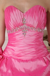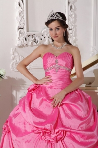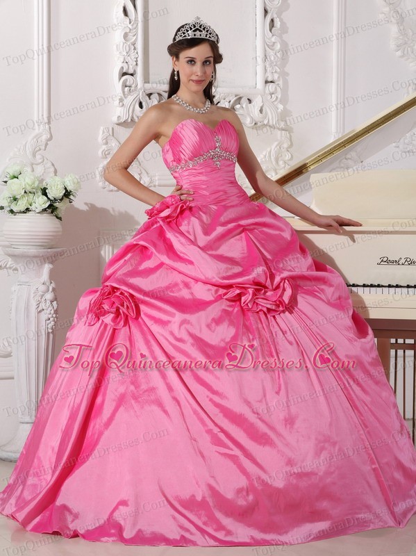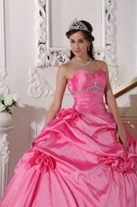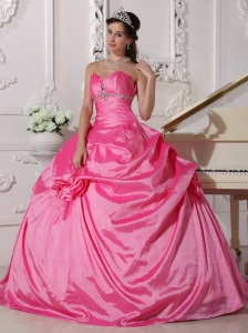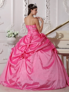 Hand Made Flowers Ruched Rose Pink Quinceanera Dresses