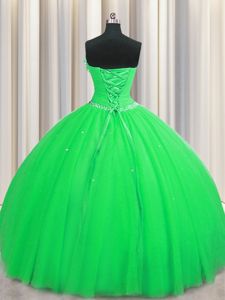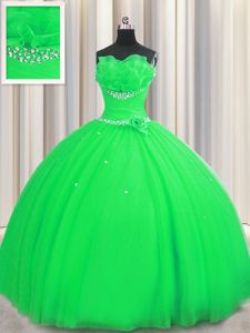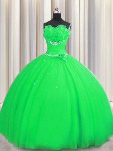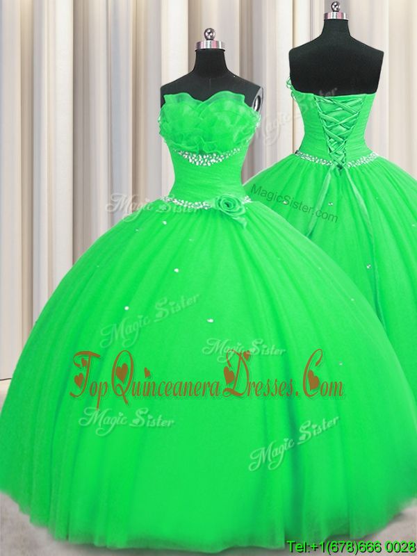 Handcrafted Flower Green Sleeveless Tulle Lace Up Sweet 16 Dresses for Military Ball and Sweet 16 and Quinceanera