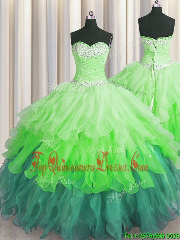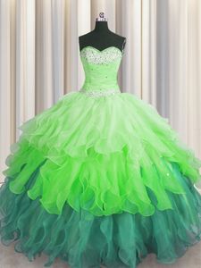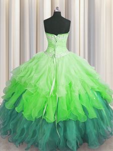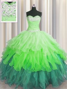 Handcrafted Flower Hot Pink Sleeveless Floor Length Beading and Ruffles Lace Up Quinceanera Dresses