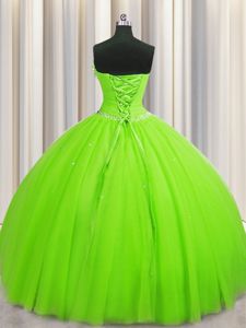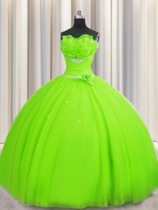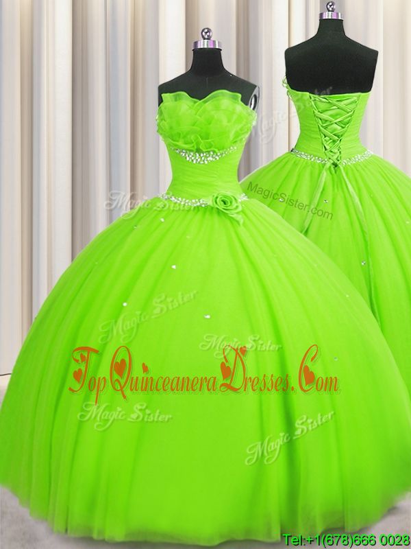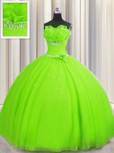Handcrafted Flower Lace Up Quinceanera Gowns Beading and Sequins and Hand Made Flower Sleeveless Floor Length