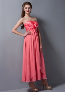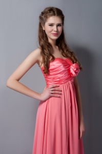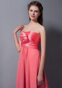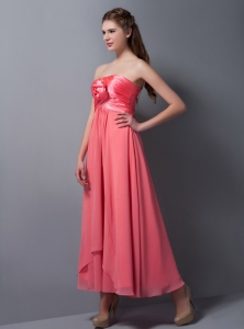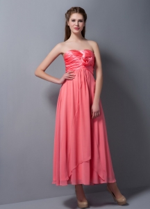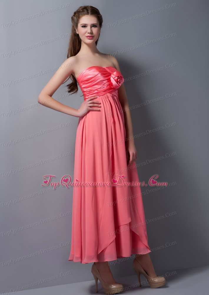 Handle Flower Dama Dress Watermelon Red Strapless Ankle-length