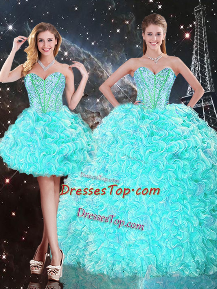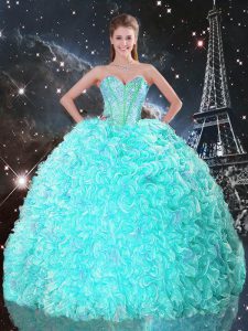 High Class Aqua Blue Strapless Neckline Beading and Ruffles Ball Gown Prom Dress Sleeveless Lace Up