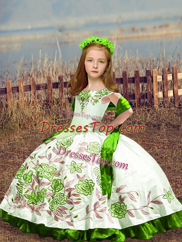 High Class Ball Gowns Kids Pageant Dress White Off The Shoulder Satin Sleeveless Floor Length Lace Up