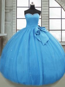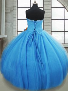 High Class Ball Gowns Quinceanera Dresses Baby Blue Sweetheart Tulle Sleeveless Floor Length Lace Up