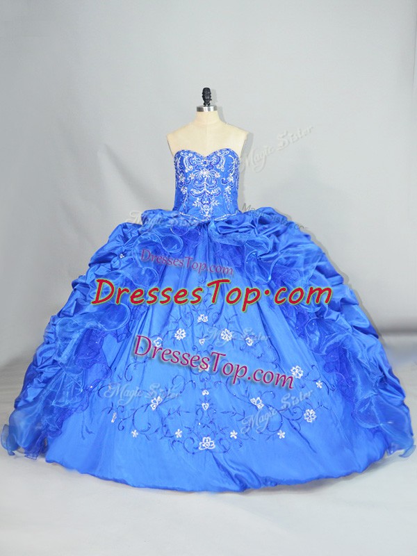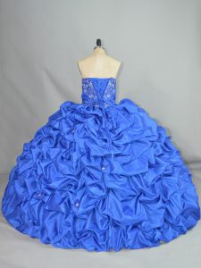 High Class Ball Gowns Quinceanera Dresses Blue Sweetheart Taffeta Sleeveless Floor Length Lace Up