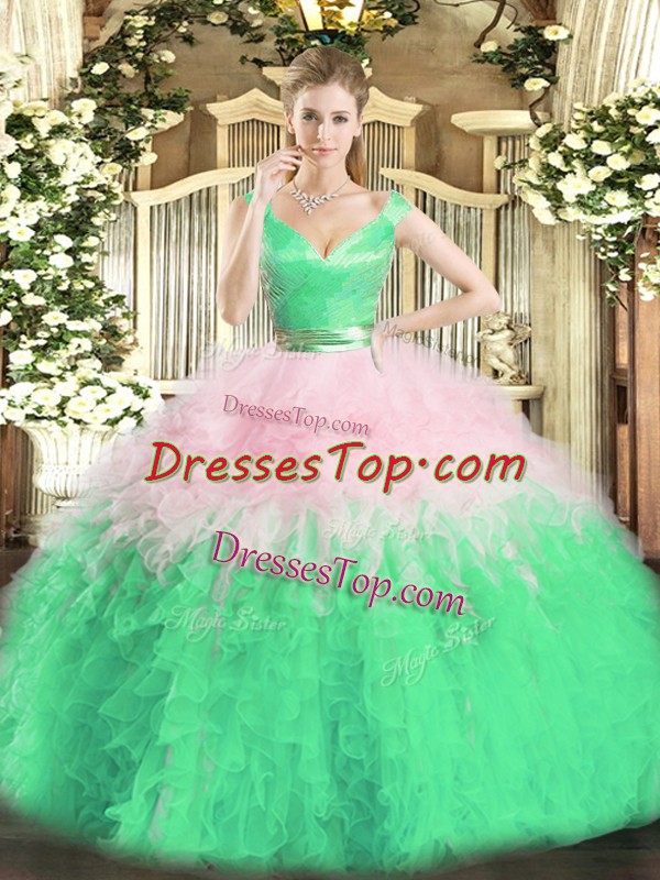 High Class Ball Gowns Quinceanera Dresses Multi-color V-neck Organza Sleeveless Floor Length Zipper