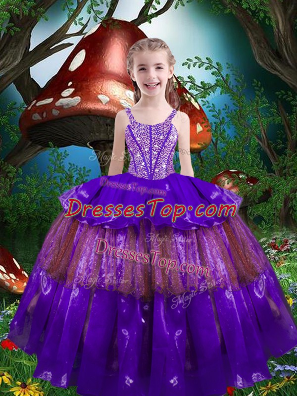 High Class Floor Length Ball Gowns Sleeveless Purple Pageant Dress Toddler Lace Up