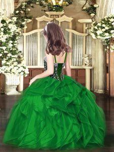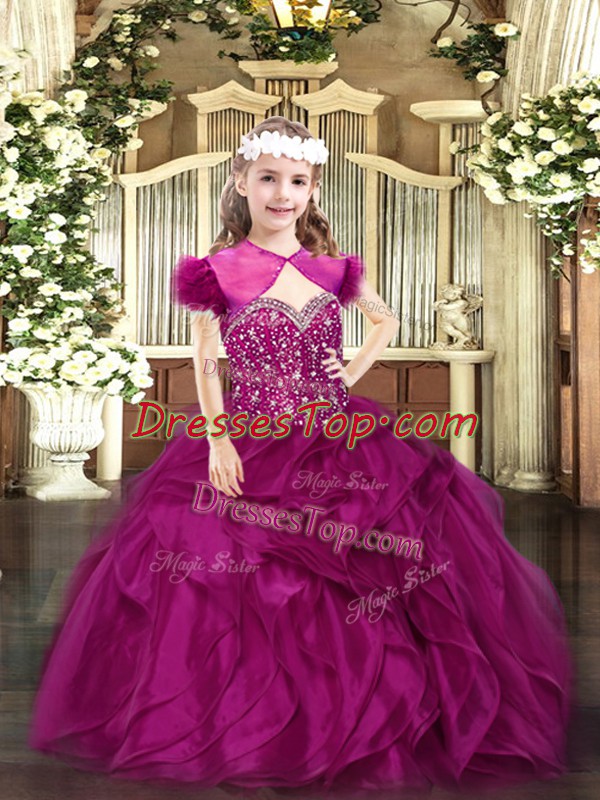 High Class Fuchsia Straps Lace Up Beading and Ruffles Little Girls Pageant Gowns Sleeveless