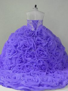 High Class Lavender Quince Ball Gowns Sweet 16 and Quinceanera with Beading Sweetheart Sleeveless Brush Train Lace Up