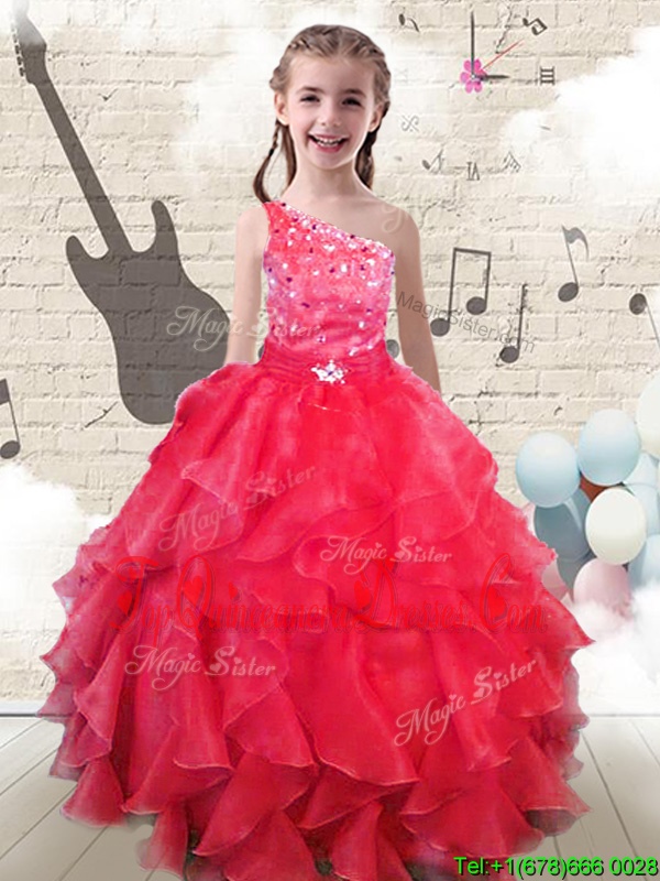 High Class Pick Ups Orange Sleeveless Organza Zipper Little Girls Pageant Gowns for Party and Wedding Party