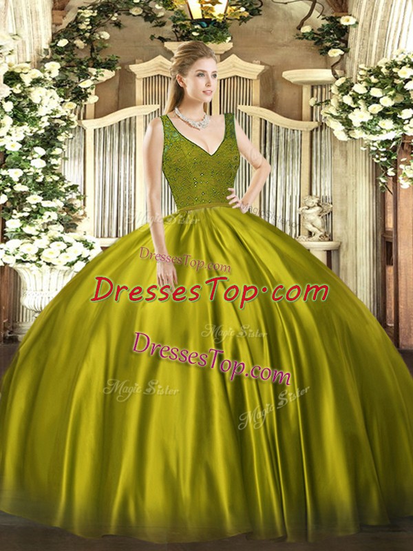 High Class Sleeveless Floor Length Beading Zipper Sweet 16 Quinceanera Dress with Olive Green
