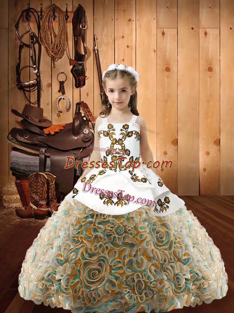 High Class Sleeveless Lace Up Floor Length Embroidery Girls Pageant Dresses