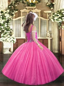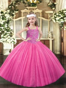 High Class Straps Sleeveless Tulle Little Girls Pageant Gowns Beading Lace Up