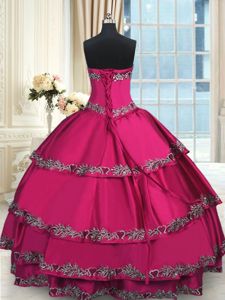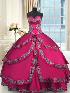 High Class Wine Red Taffeta Lace Up Sweetheart Sleeveless Floor Length 15th Birthday Dress Beading and Embroidery and Ruffled Layers