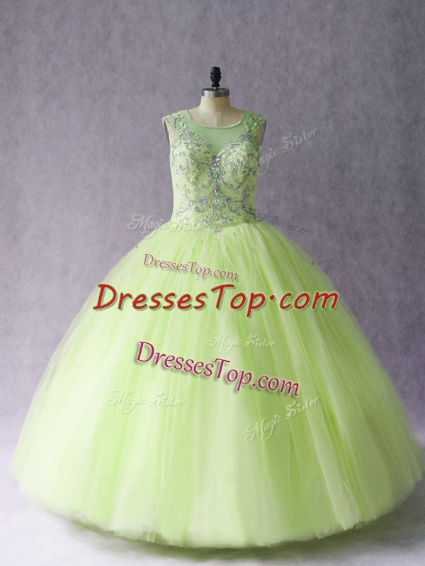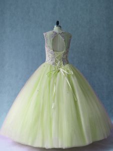 High Class Yellow Green Sleeveless Beading Floor Length Quinceanera Dresses