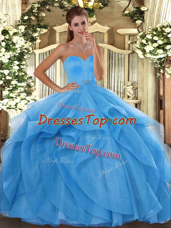 High End Ball Gowns 15th Birthday Dress Baby Blue Sweetheart Tulle Sleeveless Floor Length Lace Up