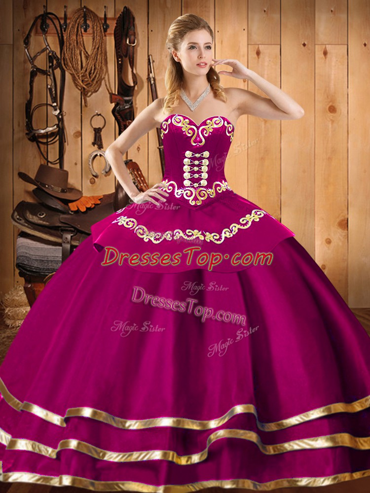 High End Floor Length Ball Gowns Sleeveless Fuchsia Vestidos de Quinceanera Lace Up