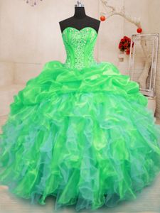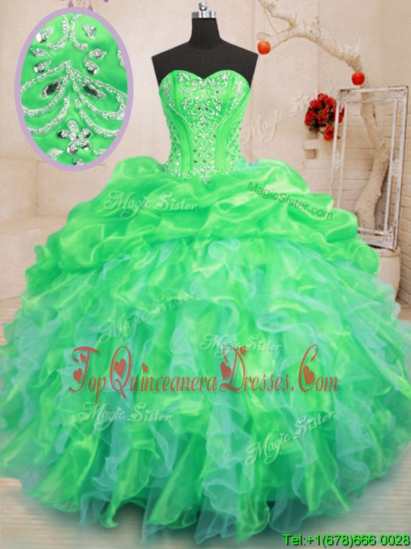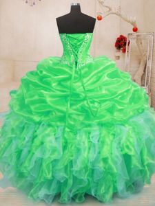 High End Floor Length Ball Gowns Sleeveless Green Sweet 16 Dress Lace Up