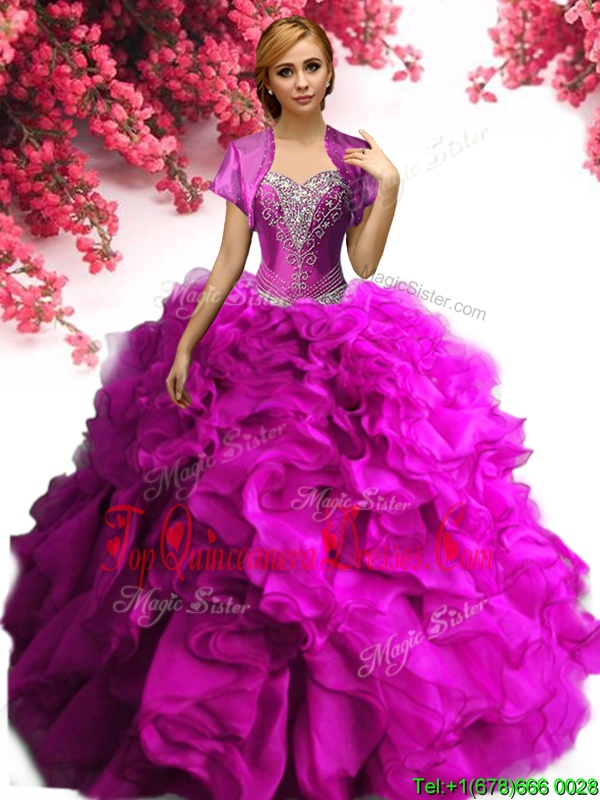 High End Floor Length Fuchsia Quinceanera Gowns Sweetheart Sleeveless Lace Up