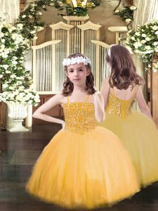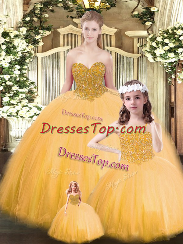 High End Floor Length Gold Vestidos de Quinceanera Sweetheart Sleeveless Lace Up