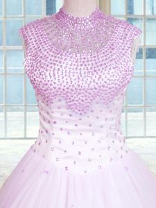 High End Floor Length Lilac Quinceanera Gowns High-neck Sleeveless Zipper